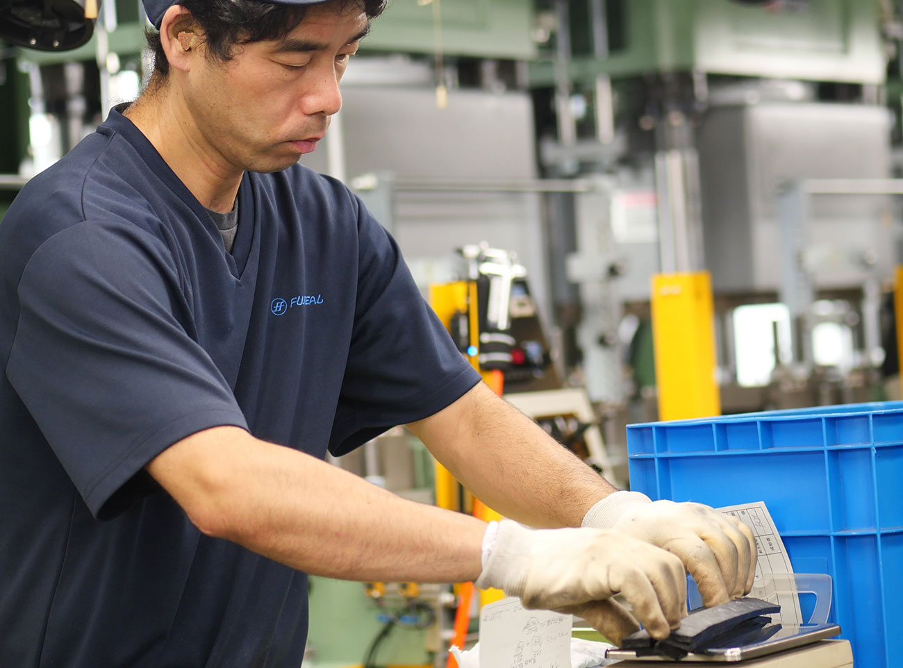 コツコツと取り組むことのできる人が向いていると思います。 また、一見なんの変哲もない素材から機能部品へと変わっていくものづくりプロセスに興味をもっていただける方や、ゴムという素材が非常に奥が深いことから、探求心のある方にも向いていると思います。